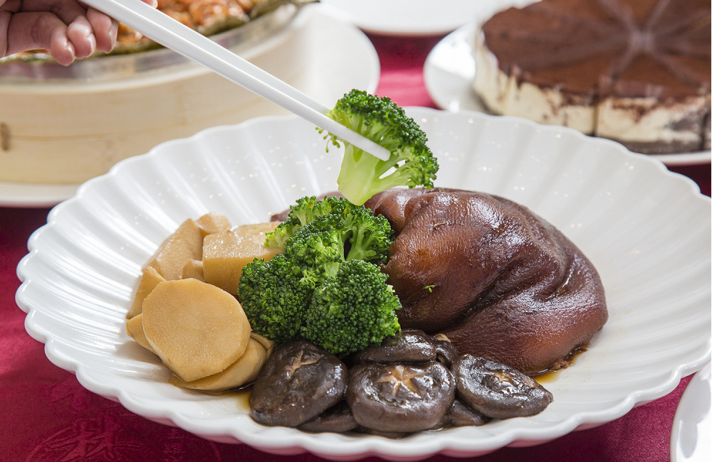 滷到油亮發光的封肉,旁邊放上絕配的筍子,許多喜宴都會出現的ㄧ道料理,使用擁有瓷器外觀但重量較輕的PET菊花盤,是這道菜不可或缺的好幫手。